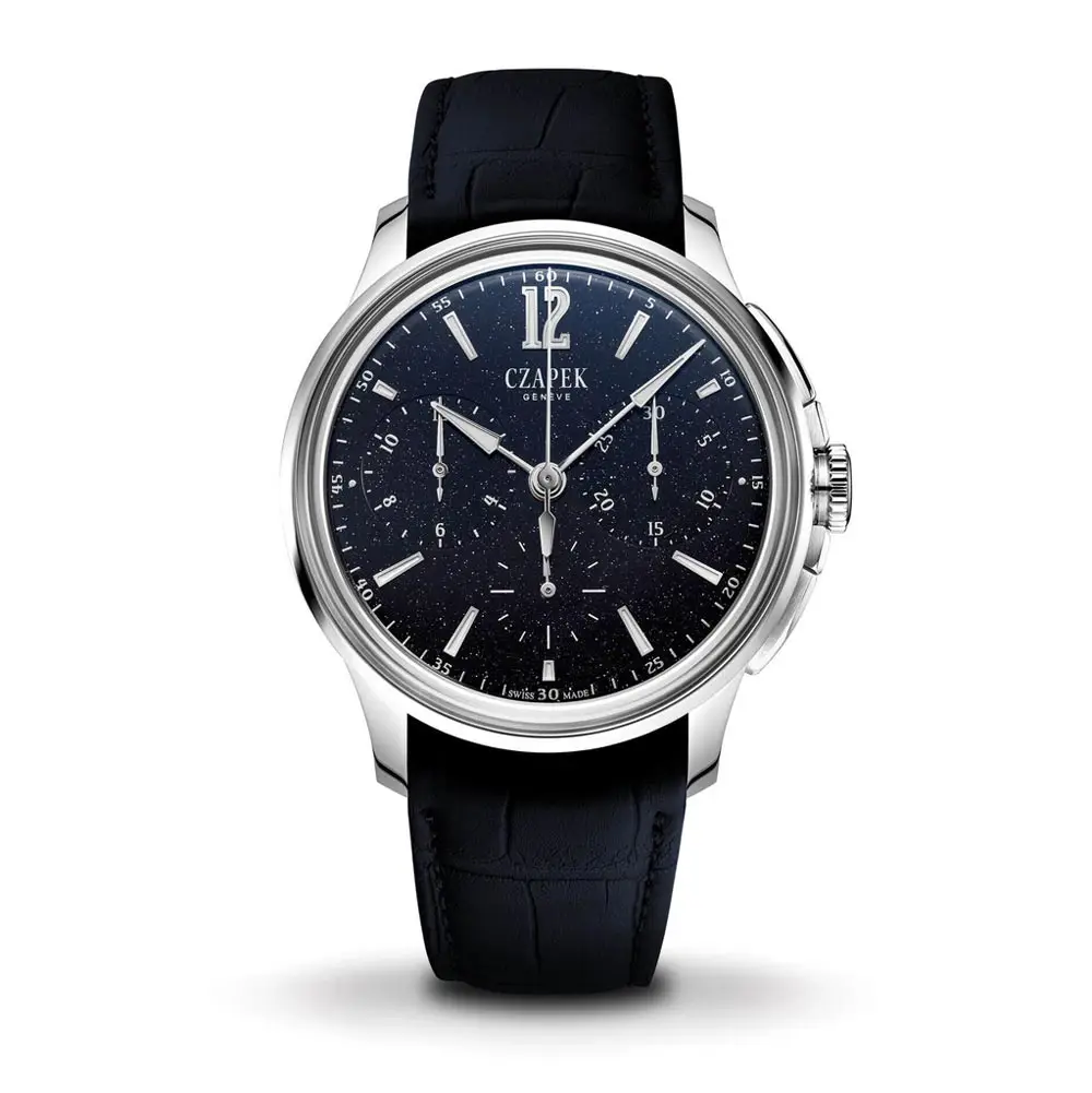 Часы Czapek Faubourg de Cracovie Aventurine — это воплощение звёздной элегантности и технического совершенства. Эта уникальная модель от независимой швейцарской мануфактуры покорит любого ценителя исключительных хронографов — как внешним обликом, так и внутренней сложностью.