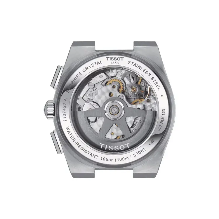 Внутри установлен автоматический калибр Valjoux A05.H31 с запасом хода 60 часов и функциями хронографа для точного измерения секунд, минут и часов. Прозрачная задняя крышка открывает вид на изящно декорированный механизм, отражая мастерство и внимание Tissot к деталям. Благодаря водонепроницаемости до 100 метров (10 бар), часы подходят как для повседневного ношения, так и для активного отдыха.