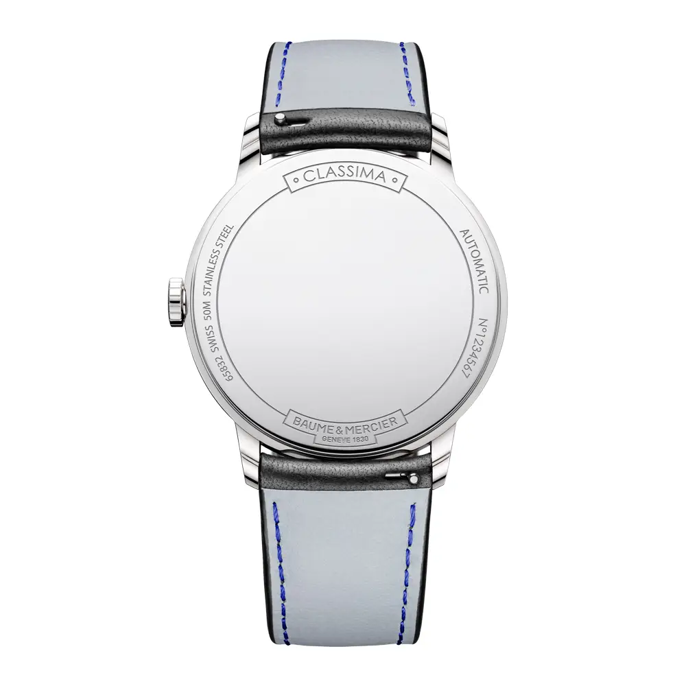 Внутри установлен швейцарский автоматический калибр с запасом хода около 38 часов и окном даты на отметке 3 часа. Модель воплощает философию коллекции Classima — чистоту, гармонию и элегантность без компромиссов.