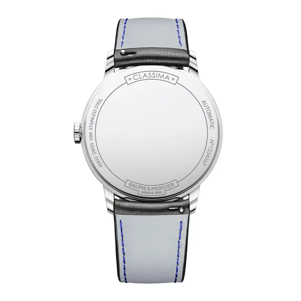 Внутри установлен швейцарский автоматический калибр BM11200 с запасом хода около 38 часов, частотой 28 800 полуколебаний в час и 26 камнями. Часы оснащены окном даты на отметке 3 часа и воплощают философию коллекции Classima — чистоту, гармонию и изысканную простоту.