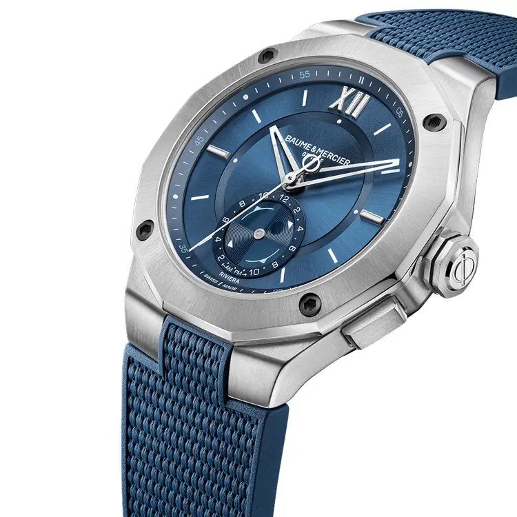 Коллекция Riviera от Baume & Mercier, впервые представленная в 1973 году, является иконой спортивной элегантности. Неповторимая 12-гранная форма корпуса и оригинальный дизайн делают ее идеальным выбором для тех, кто ищет часы с характером.