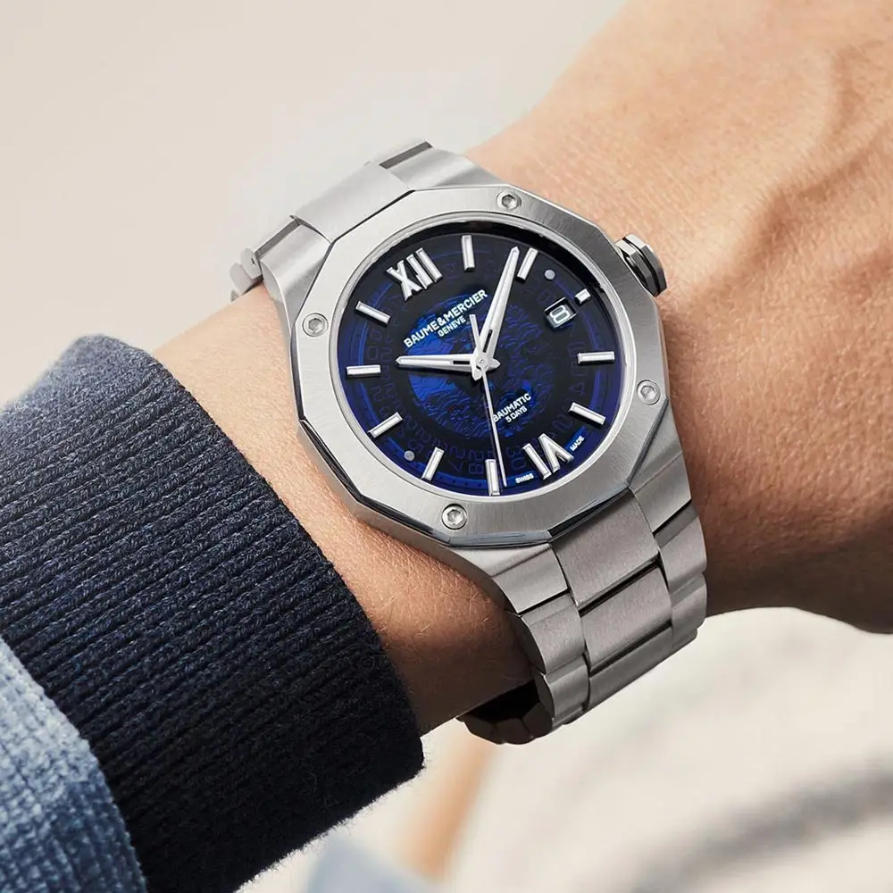 Коллекция Riviera от Baume & Mercier, впервые представленная в 1973 году, является иконой спортивной элегантности. Неповторимая 12-гранная форма корпуса и оригинальный дизайн делают ее идеальным выбором для тех, кто ищет часы с характером.