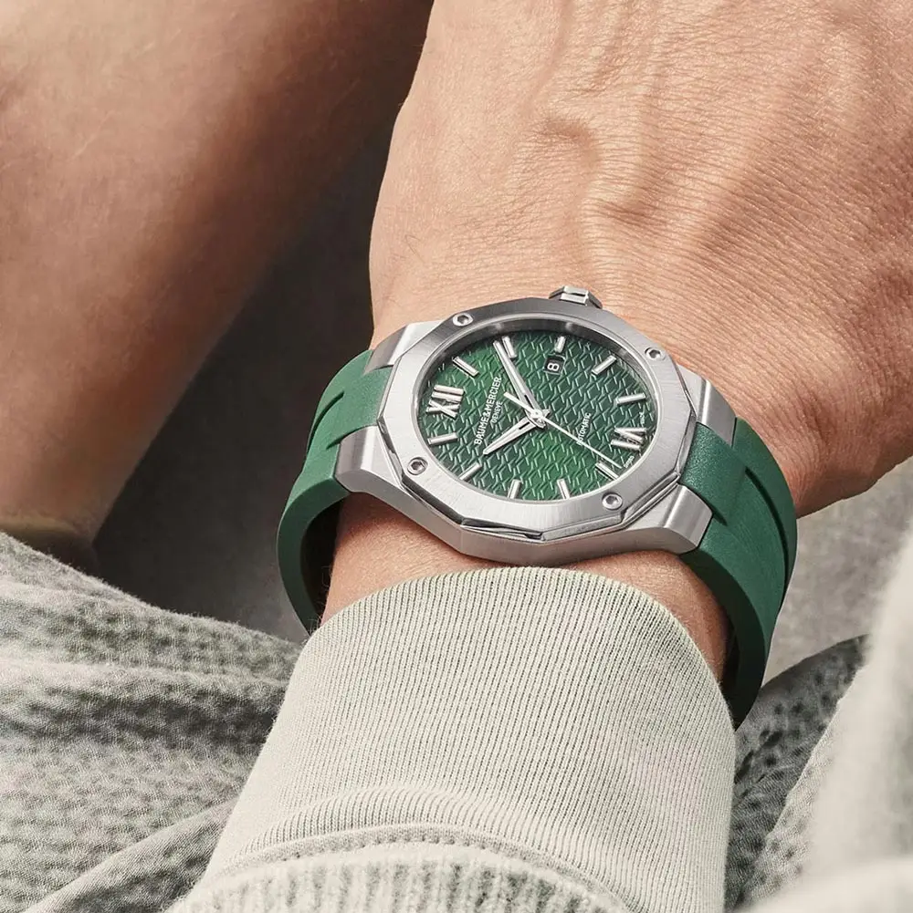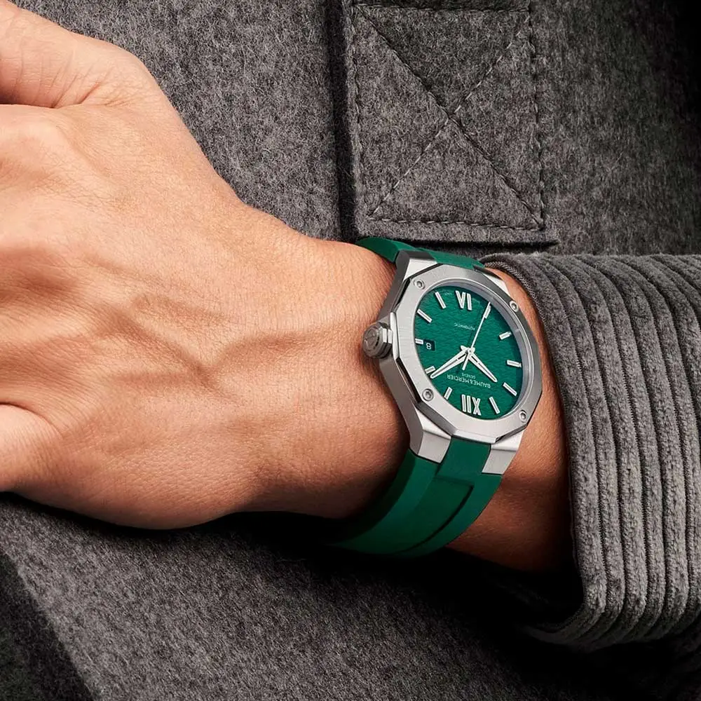 Корпус из нержавеющей стали диаметром 42 мм дополнен двенадцатигранным безелем, придающим часам узнаваемый облик. Зелёный циферблат с текстурой, защищённый сапфировым стеклом, оснащён окном даты на 3 часах для дополнительного удобства.