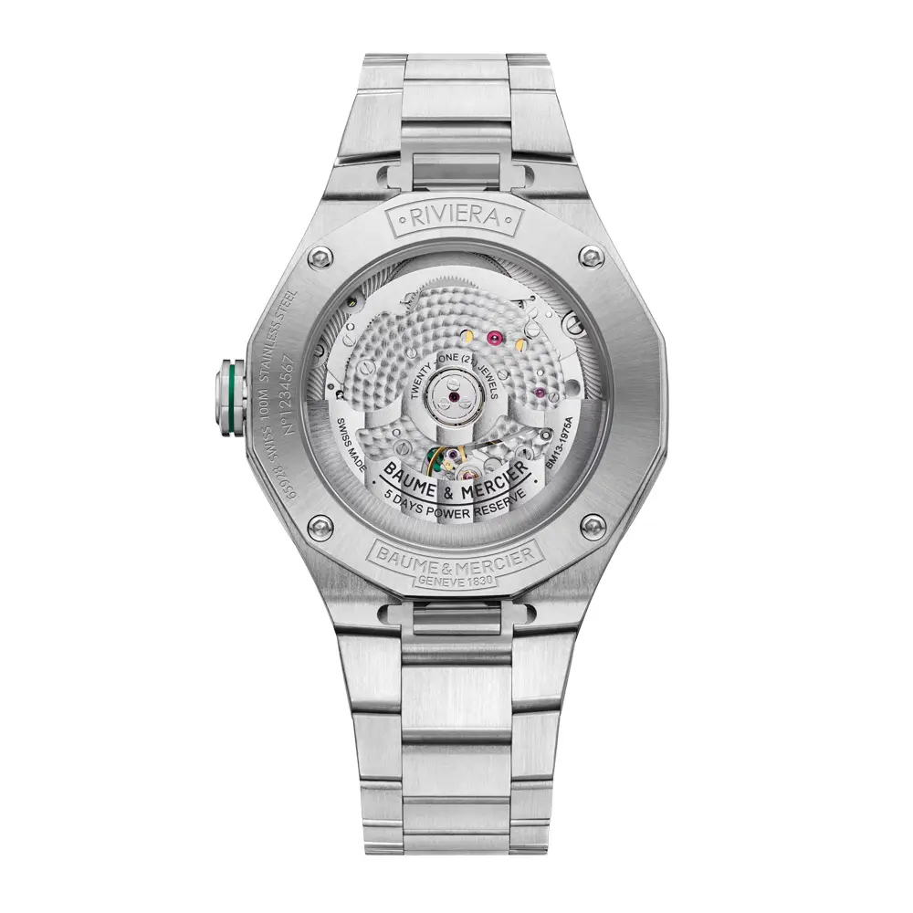 Коллекция Riviera от Baume & Mercier, впервые представленная в 1973 году, является иконой спортивной элегантности. Неповторимая 12-гранная форма корпуса и оригинальный дизайн делают ее идеальным выбором для тех, кто ищет часы с характером.