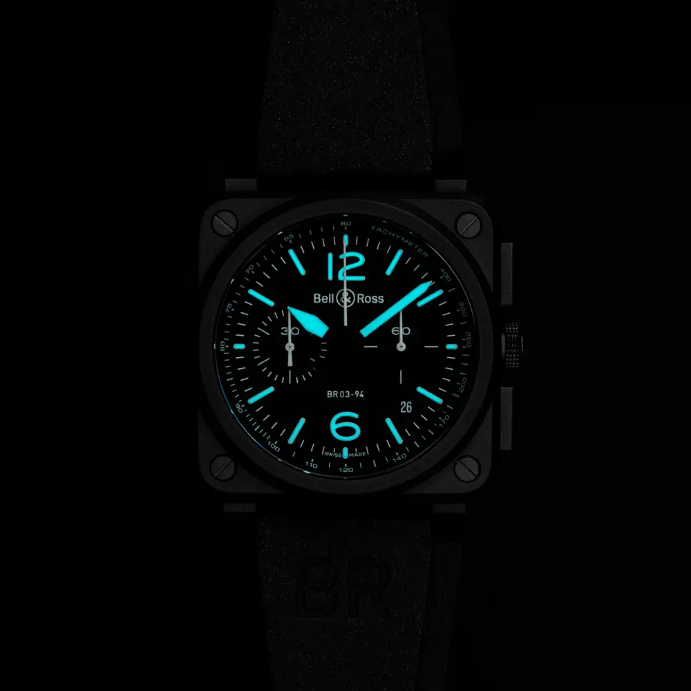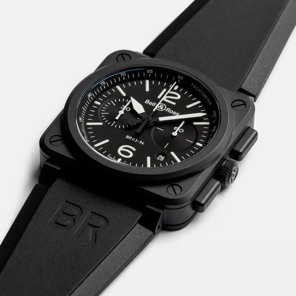Bell & Ross BR 03-94 Black Matte (Ref. BR0394-BL-CE) воплощает чистую суть авиационного и военного дизайна, ставшего отличительной чертой Bell & Ross. Этот хронограф создан как профессиональный инструмент, вдохновлённый приборами в кабинах самолётов — функциональный, точный и харизматичный.