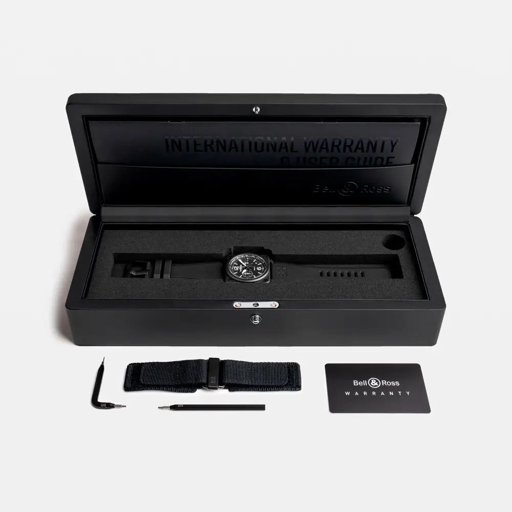 Внутри установлен автоматический калибр BR-CAL.301 с функцией хронографа и датой между 4 и 5 часами, обеспечивающий точность и запас хода около 42 часов. Благодаря водонепроницаемости 100 м (10 ATM) и чёрному каучуковому ремешку, BR 03-94 Black Matte является символом силы, точности и профессионализма.