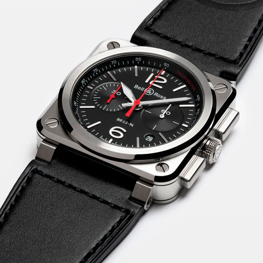Bell & Ross BR 03-94 Black Steel (Ref. BR0394-BLC-ST/SCA) — это выразительный хронограф, сочетающий авиационную точность, техническую функциональность и прочность нержавеющей стали. Дизайн, вдохновлённый приборами кабины самолёта, отражает философию Bell & Ross — быть точными, читаемыми и надёжными в любых условиях.