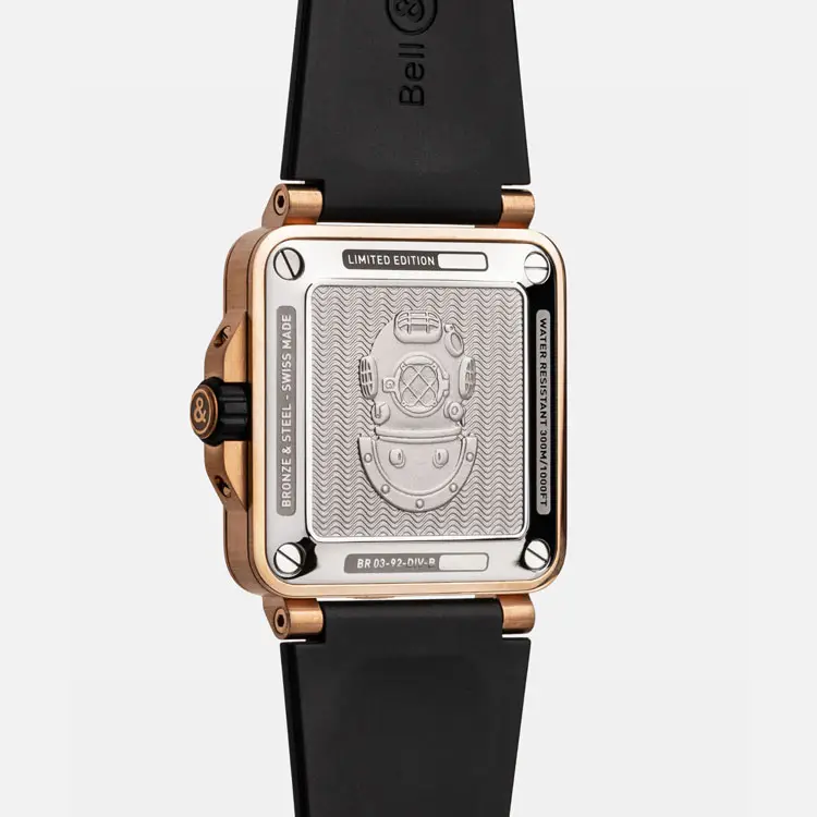 Модель Bell & Ross BR 03 Diver Black Green Bronze сочетает ретро-шарм бронзы с современной технологией и функциональностью профессиональных дайверских часов. Корпус из бронзы размером 42 мм со временем покрывается естественной патиной, а чёрный анодированный безель добавляет контраст и техническую элегантность.