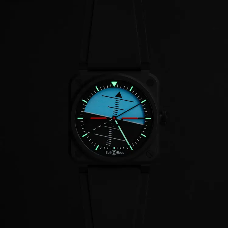Модель Bell & Ross BR 03 Horizon — это современная интерпретация авиационных приборов, вдохновлённая искусственным горизонтом в кабине пилота. Она сочетает техническую точность, минимализм и характерный квадратный дизайн коллекции BR 03, создавая инструмент для ценителей авиационной эстетики.
