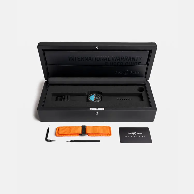 Внутри установлен автоматический калибр BR-CAL.302 с запасом хода 54 часа. Чёрный каучуковый ремешок с классической пряжкой подчёркивает технический характер модели. С водонепроницаемостью до 100 м (10 бар) BR 03 Horizon воплощает авиационное наследие, современный минимализм и инженерную точность, ставшие синонимом бренда Bell & Ross.