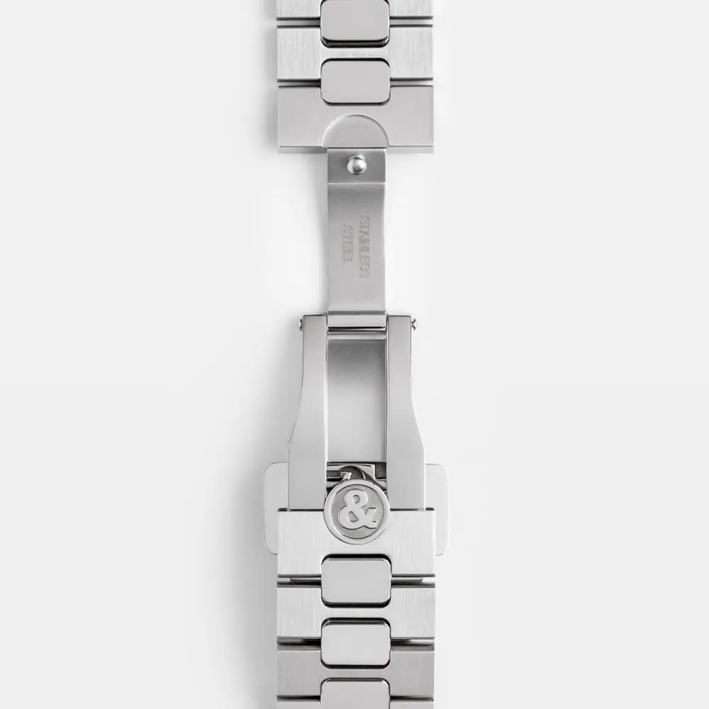 Часы впечатляют глубоким синим циферблатом с эффектом солнечных лучей, который меняет оттенок в зависимости от воздействия света. Четкие стрелки и индексы покрыты люминесцентным слоем для идеальной видимости даже в плохих условиях. В положении '3 часа' расположено едва заметное окошко даты, которое не нарушает общего минималистичного впечатления.