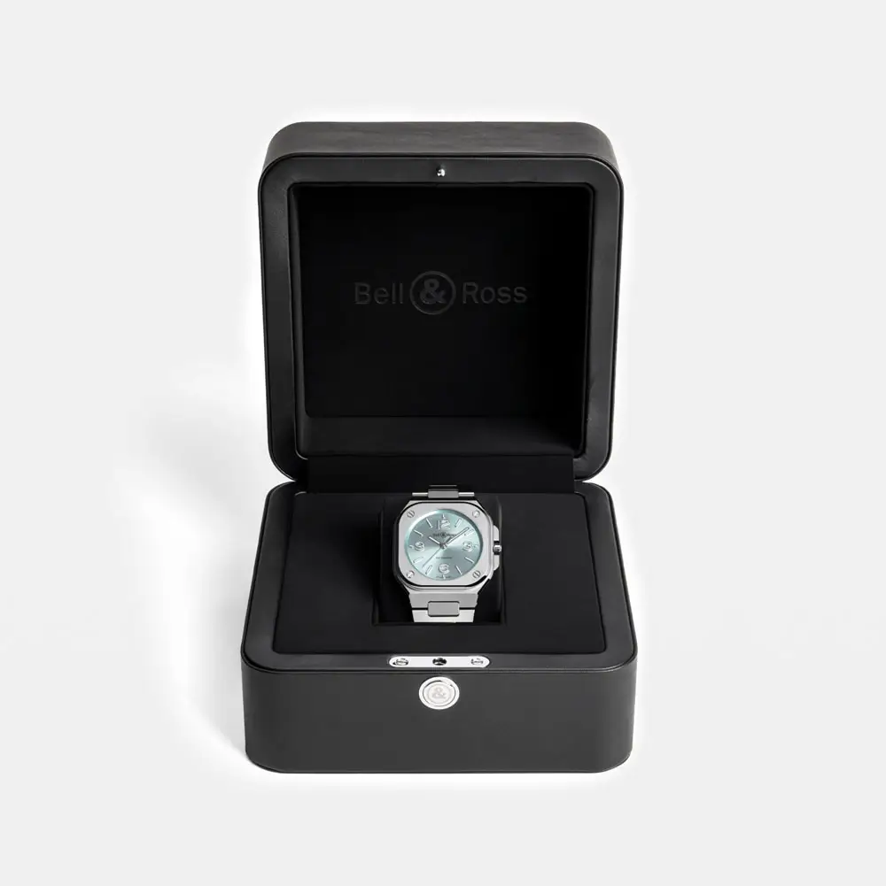 В часах установлен автоматический механизм BR-CAL.321 с 38-часовым запасом хода, который виден через прозрачный сапфировый циферблат. Водонепроницаемость 100 метров и прочная конструкция делают BR 05 Blue Steel идеальным спутником для повседневной жизни в городе - стильным, техничным и уверенным.