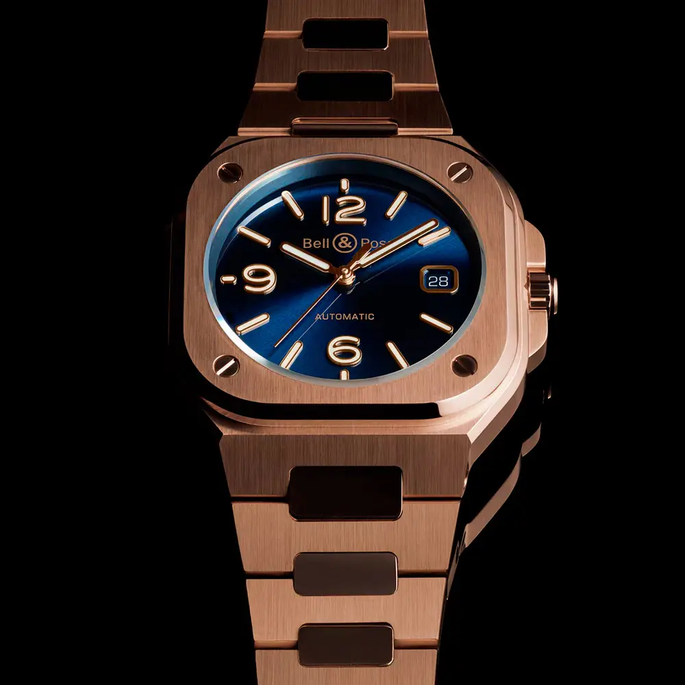 Bell & Ross BR 05 Blue Gold (Ref. BR05A-BLU-PG/SPG) — это самая роскошная версия культовой коллекции BR 05, объединяющая современный архитектурный дизайн и изысканность 18-каратного розового золота. Модель создана для тех, кто ценит престиж, утончённость и часовое мастерство высшего уровня.