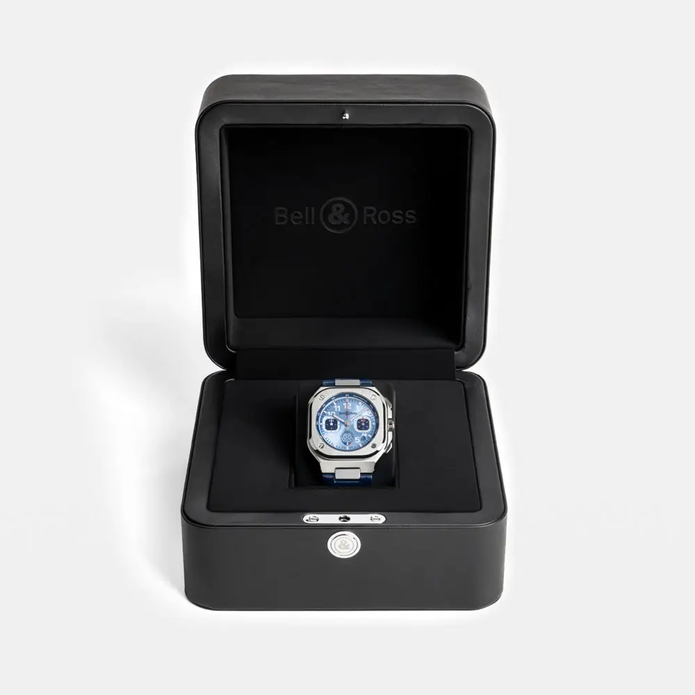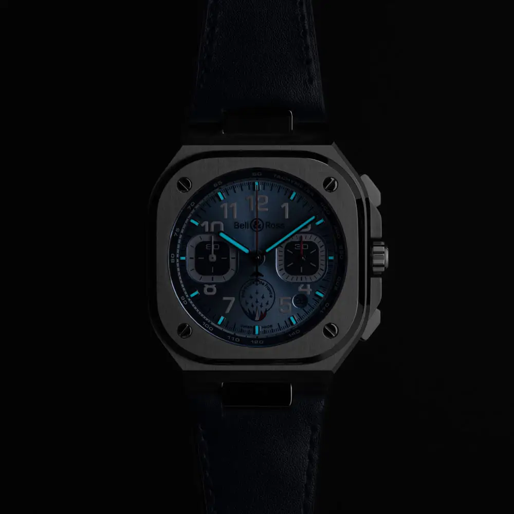 Внутри установлен автоматический калибр BR-CAL.326 с запасом хода 60 часов и функциями хронографа, малой секунды и даты. Модель комплектуется синим кожаным ремешком с трёхцветной строчкой и имеет водонепроницаемость 100 м (10 ATM). Ограниченная серия в 500 экземпляров, BR 05 Chrono Patrouille de France сочетает мощность, элегантность и дух авиации.