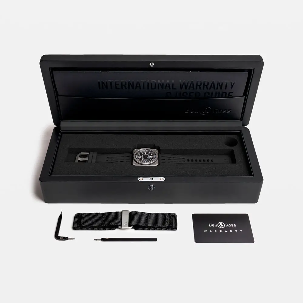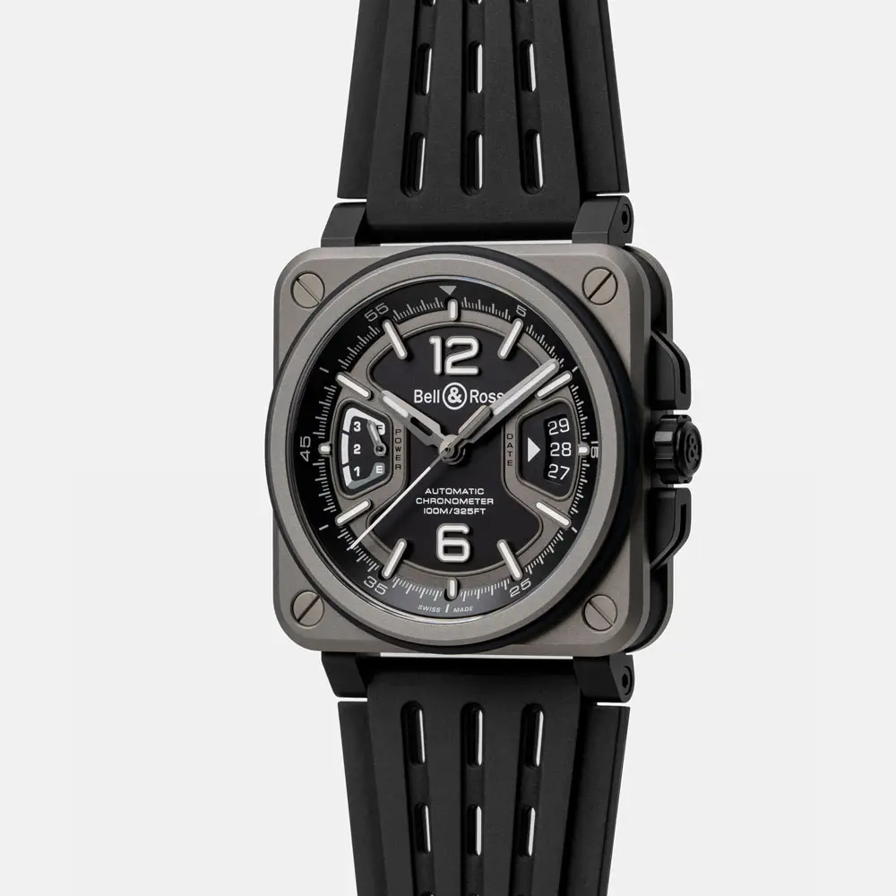 Часы водонепроницаемы до 100 метров и комплектуются перфорированным каучуковым ремешком, который подчёркивает их спортивный характер. Bell & Ross BR-X3 Black Titanium — идеальный выбор для тех, кто ищет сочетание высокой производительности, современного дизайна и смелого стиля.