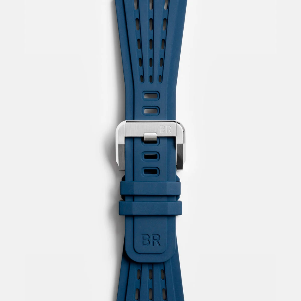 Часы водонепроницаемы до 100 метров и комплектуются удобным перфорированным каучуковым ремешком, гармонирующим с современным дизайном. Bell & Ross BR-X3 Blue Steel — идеальный выбор для тех, кто ценит спортивную элегантность, техническое совершенство и смелый стиль в одном аксессуаре.