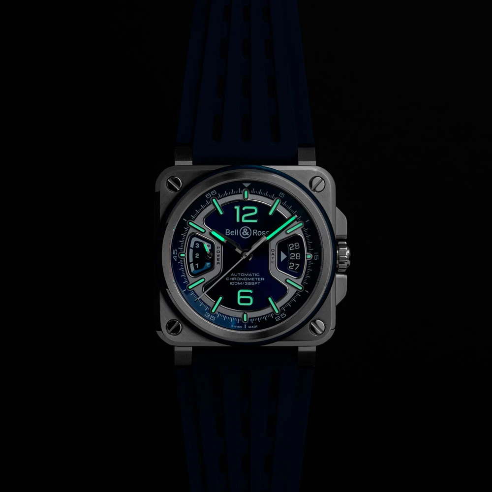 Bell & Ross BR-X3 Blue Steel — современная интерпретация культового квадратного дизайна бренда. Корпус из нержавеющей стали диаметром 41 мм дополнен анодированным синим безелем и архитектурными элементами, подчеркивающими технический характер модели. Сапфировое стекло с антибликовым покрытием гарантирует идеальную читаемость в любых условиях.
