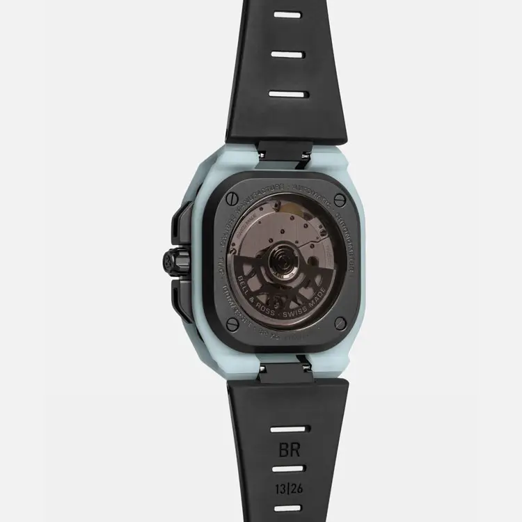 Механизм автоматический BR-CAL.323, созданный в сотрудничестве с Kenissi, обеспечивает запас хода до 70 часов. Часы дополнены синим каучуковым ремешком с раскладывающейся застёжкой и обладают водонепроницаемостью 100 м (10 ATM). Bell & Ross BR-X5 Blue Lum — это символ современных технологий, надёжности и светящейся элегантности.