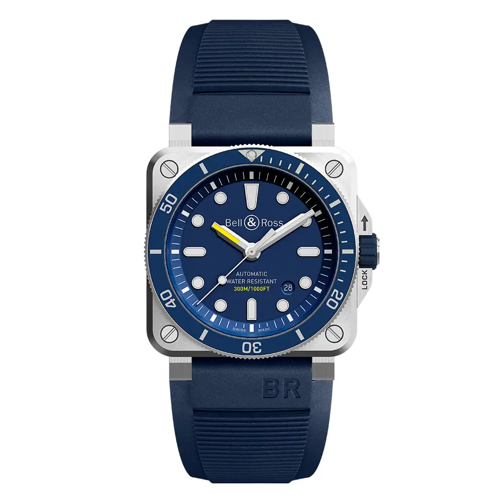 Bell & Ross BR 03-92 Diver Blue (Ref. BR0392-D-BU-ST/SRB) — это идеальное сочетание функциональности дайверских часов и современного дизайна. Вдохновлённая профессиональными приборами пилотов и водолазов, она объединяет точность, надёжность и стиль.
