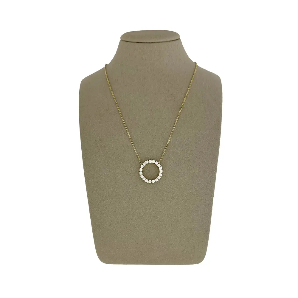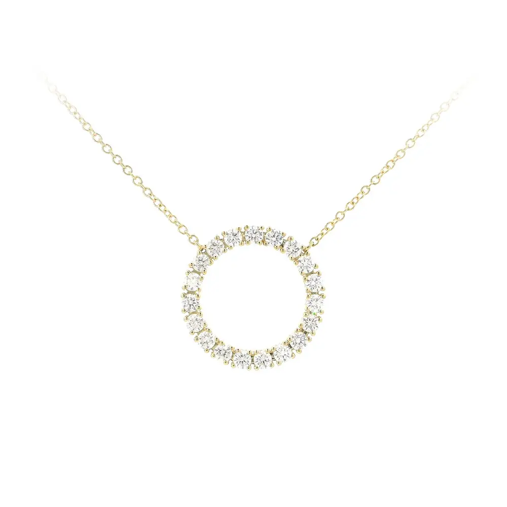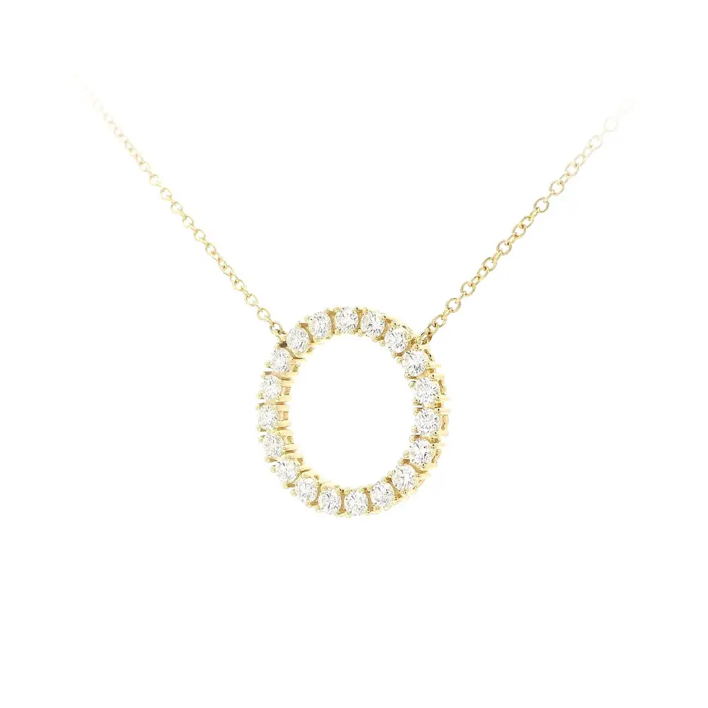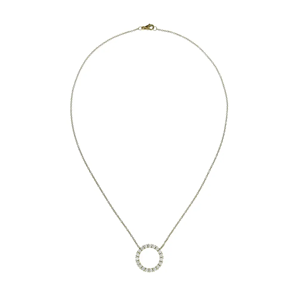 Это прекрасное ожерелье - сочетание элегантности, роскоши и точного исполнения. Тонкая 42-сантиметровая цепочка, изготовленная из 18-каратного золота, придает легкость и комфорт при ношении. Главным элементом украшения является круглая подвеска, украшенная бриллиантами общим весом 1,20 карата цвета G и чистоты VS, обеспечивающими исключительное сияние и изысканный вид.
