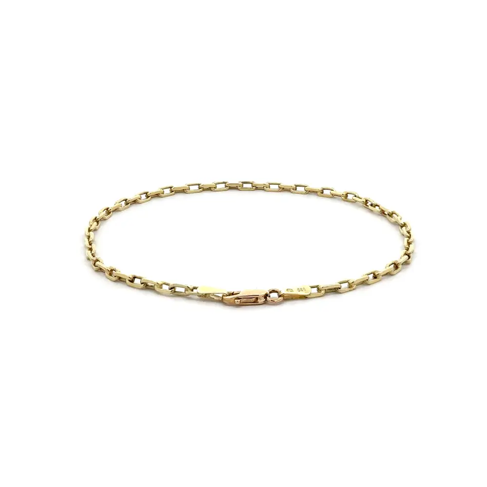 Элегантный браслет во wzоре Анкер выполнен из жёлтого золота 14 карат (585/1000) и отличается классическим, универсальным дизайном. Его длина 19 см и ширина 2,40 мм делают его подходящим как для женщин, так и для мужчин. Это изысканное украшение для повседневной носки и торжественных случаев.