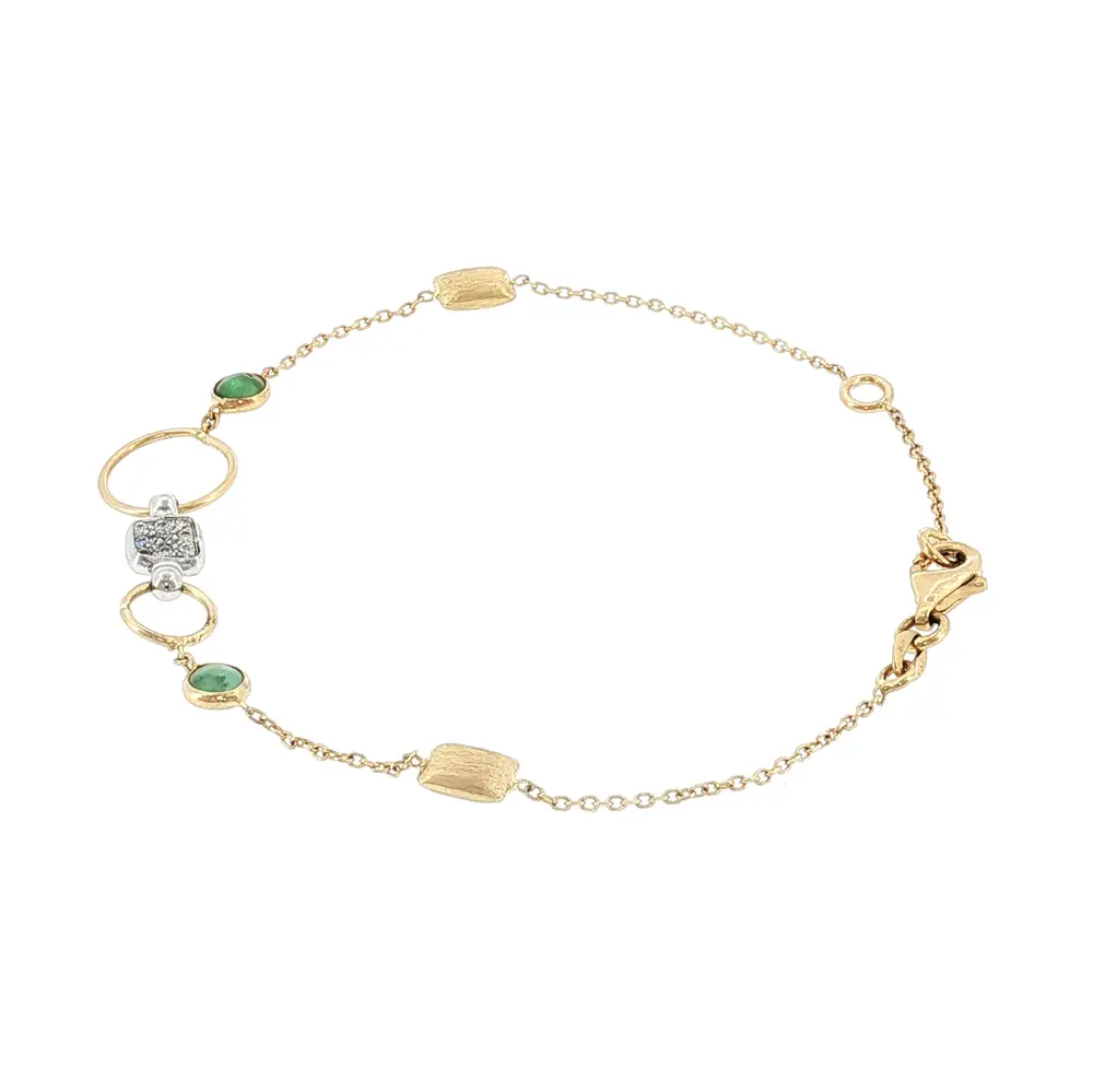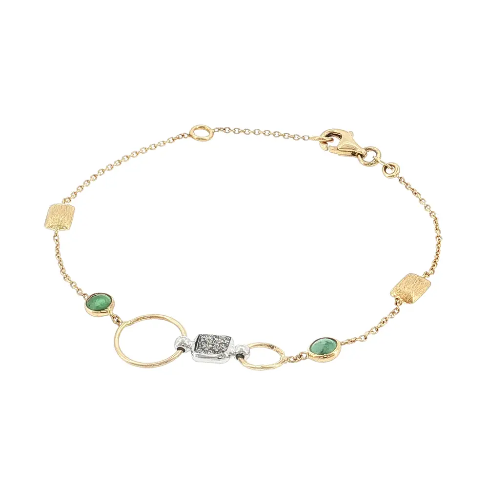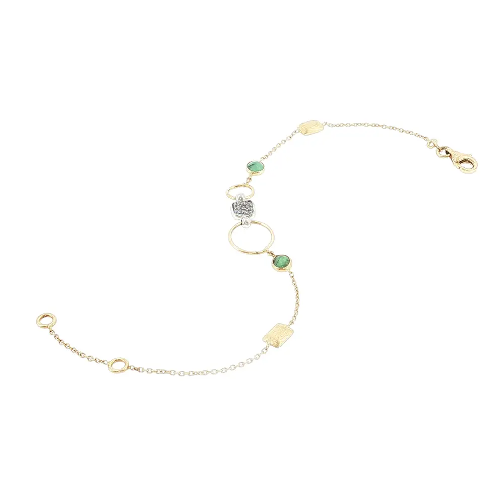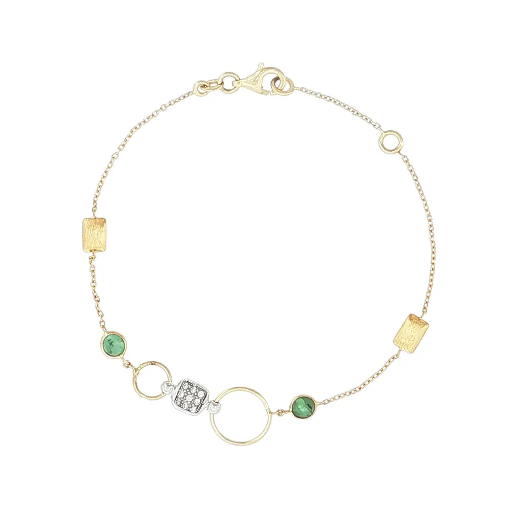 Браслет из золота 14 карат с зелёными камнями и цирконами