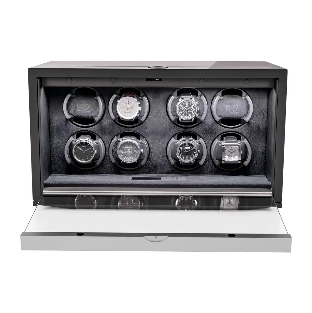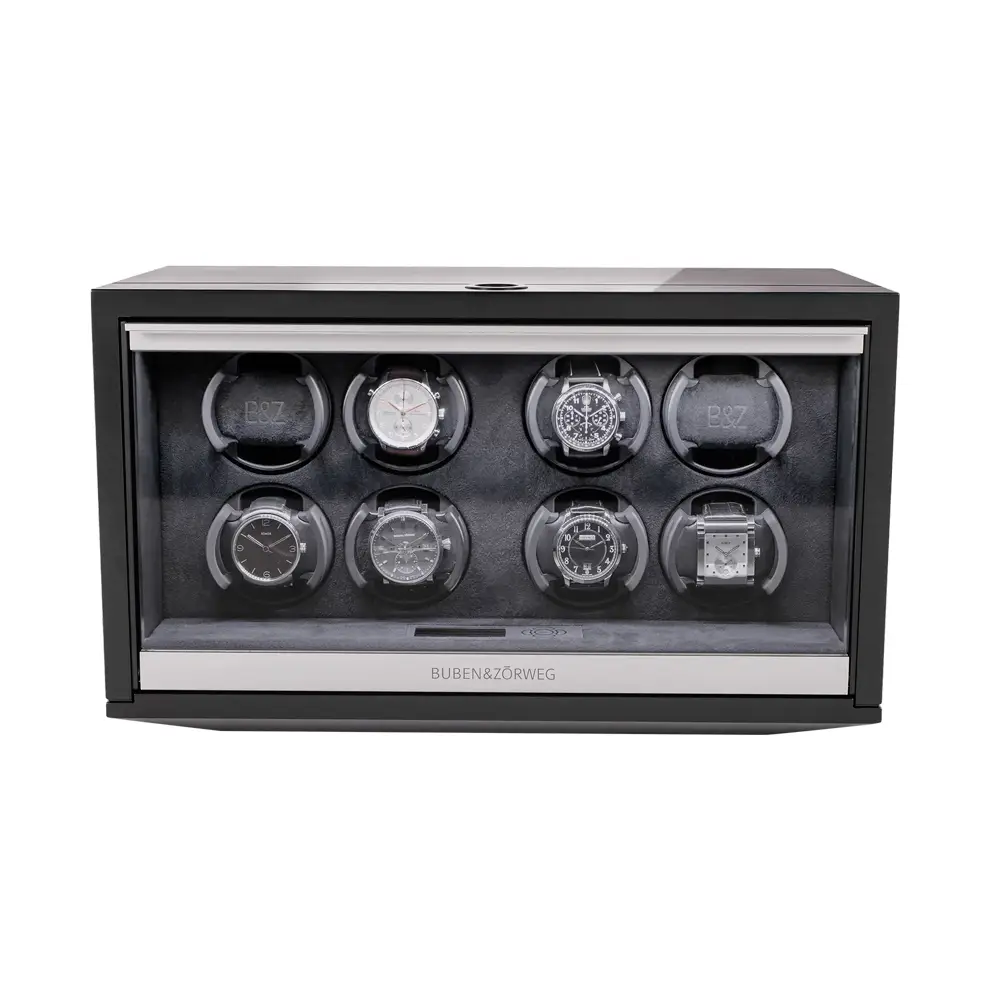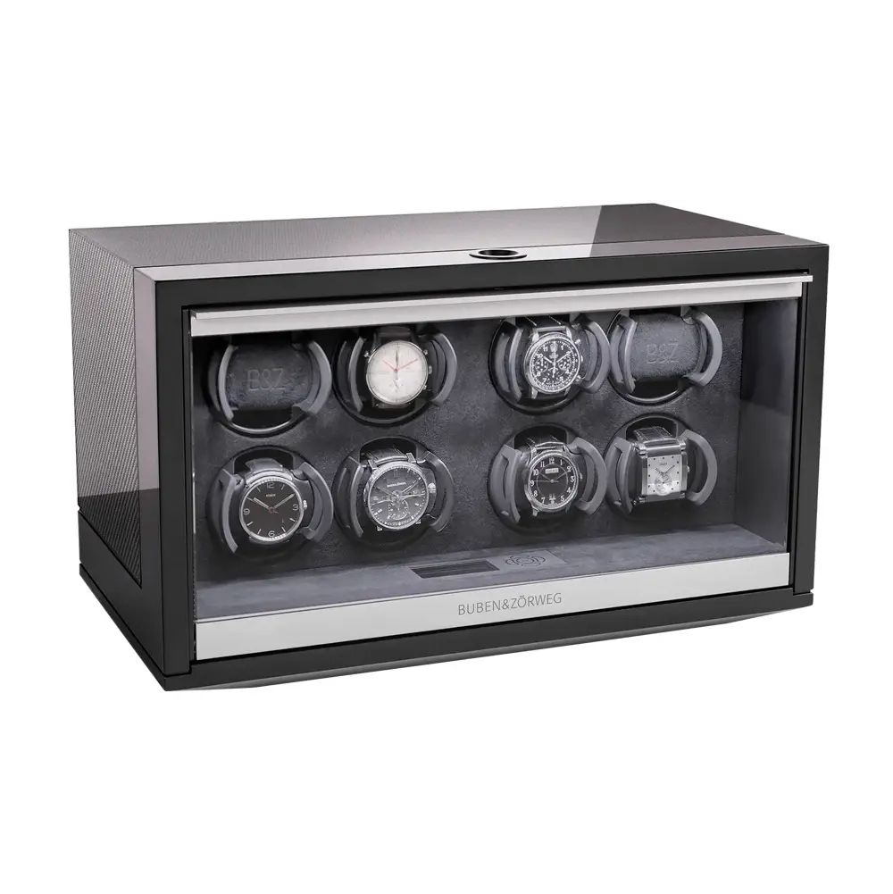 Buben & Zorweg NEO 8 Carbon High-Gloss — это роскошный вайндер для восьми автоматических часов, сочетающий передовые технологии, безупречное мастерство и элегантный дизайн. Система Time Mover® поддерживает часы в идеальном состоянии и готовыми к ношению.