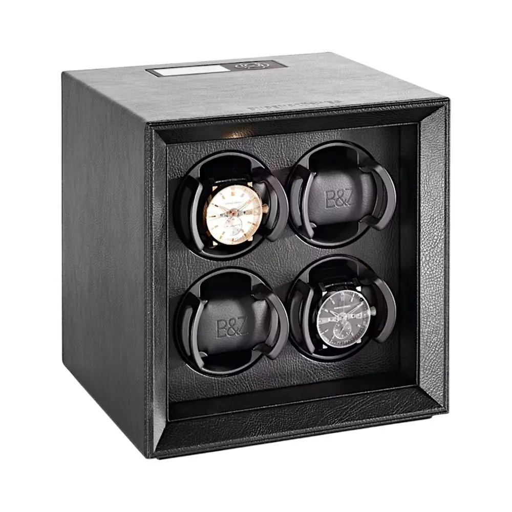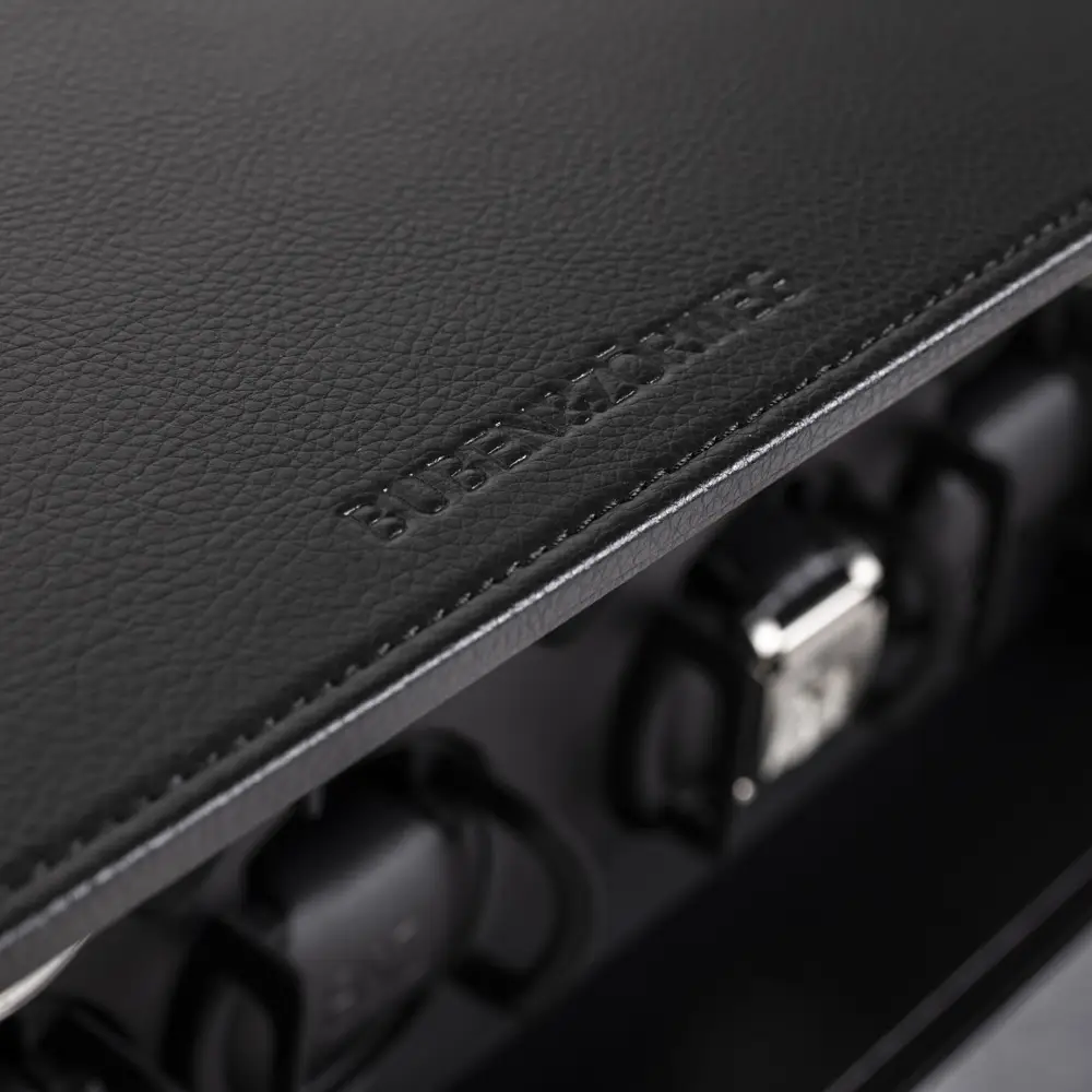 Натяжное устройство Buben & Zorweg Safe Master 4 Black — идеальное решение для безопасного и элегантного хранения до четырёх автоматических часов. Его минималистичный дизайн, обтянутый роскошной чёрной кожей, сочетает сдержанную эстетику с немецкой инженерной точностью. Компактная кубическая форма позволяет удобно разместить устройство в интерьере или сейфе, а высококачественные материалы и изысканные детали подчёркивают стиль бренда Buben & Zorweg.