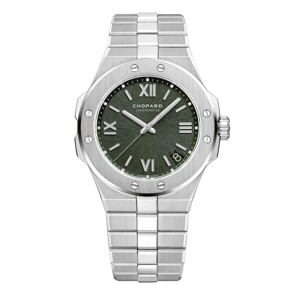 Chopard Alpine Eagle 298600-3014 — это современное воплощение роскошных спортивно-элегантных часов, вдохновлённых силой и чистотой альпийской природы. Корпус и интегрированный браслет из эксклюзивной стали Lucent Steel™ отличаются высокой прочностью, выразительным блеском и долговечной устойчивостью. Циферблат в глубоком хвойно-зелёном оттенке с тонкой текстурой, напоминающей радужку орлиного глаза, дополняют римские цифры и тщательно обработанные часовые метки.