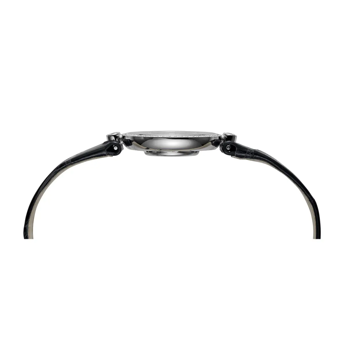 Круглый корпус диаметром 25,8 мм выполнен из белого золота 18 карат, придавая часам благородный блеск и неподвластную времени эстетику. Сапфировое стекло защищает от царапин, а водонепроницаемость 3ATM / 30M делает часы практичными для повседневной носки.