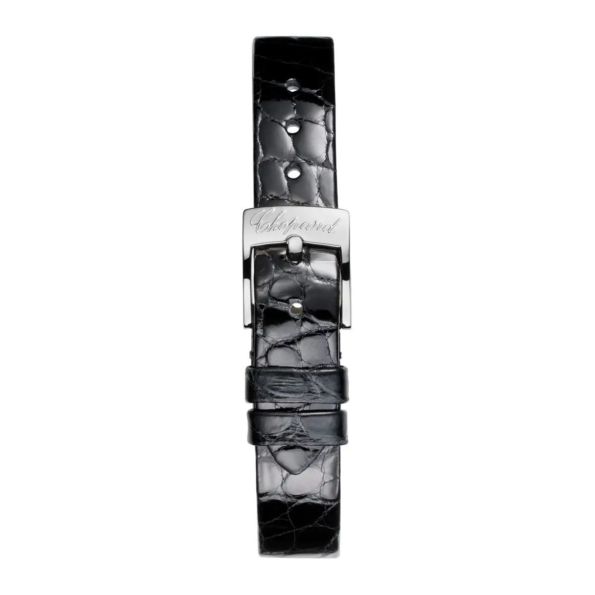 Черный ремешок из кожи аллигатора придаёт контраст и элегантность, а классическая застёжка с шипом обеспечивает надёжную фиксацию.