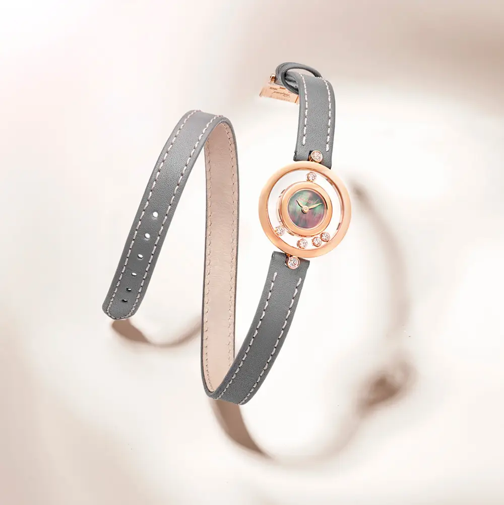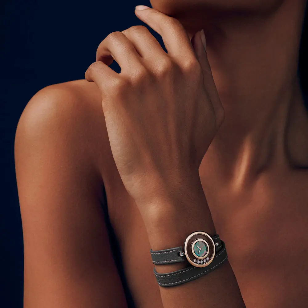 Коллекция Happy Diamonds отChopard - икона творчества, радости и свободы в дизайне. С момента своего появления в 1976 году она представила революционную концепцию - свободно движущиеся бриллианты между двумя сапфировыми кристаллами, которые танцуют по циферблату при каждом движении запястья.