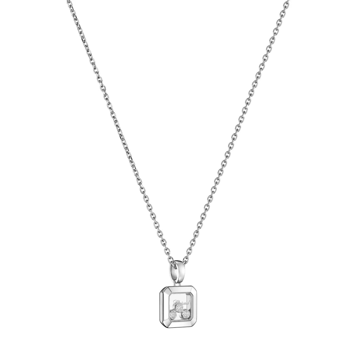 Chopard Happy Diamonds Icons 79A115‑1001 — это изысканный женский кулон из культовой коллекции, олицетворяющей радость, свободу и красоту движения. Украшение изготовлено из 18-каратного белого золота с этичным происхождением, а в его центре находятся бриллианты круглой огранки, свободно движущиеся между двумя сапфировыми стеклами. Этот фирменный стиль Chopard создаёт эффект «танцующих бриллиантов», сверкающих при каждом движении.