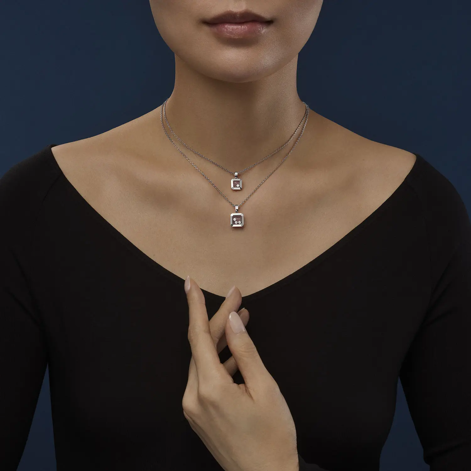 Внутри кулона расположены несколько подвижных бриллиантов общим весом 0,15 карата, отобранных в высшем качестве: цвет Top Wesselton (F‑G) и чистота IF‑VVS. В сочетании с отполированным белым золотом они создают чарующую игру света, отражая девиз коллекции: «Little Diamonds Do Great Things».