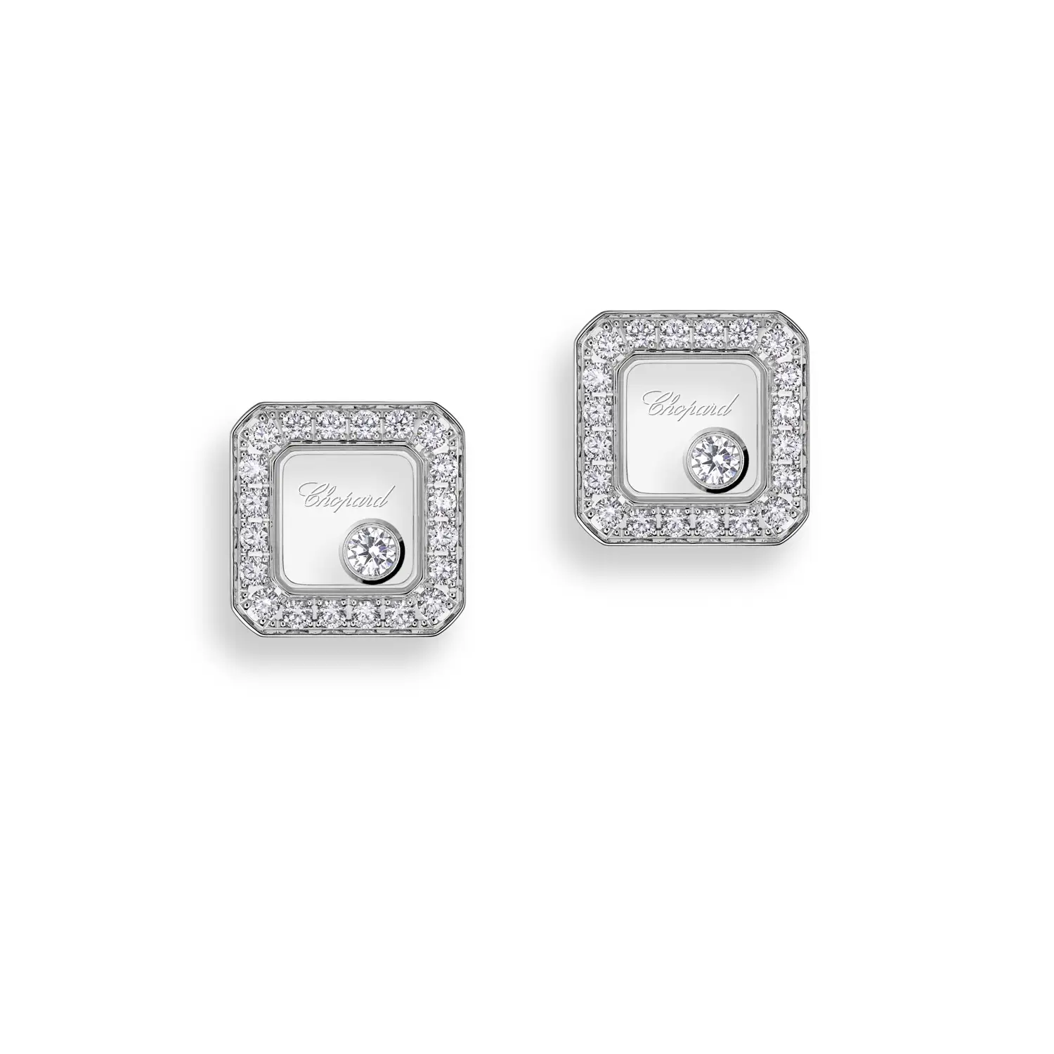 Серьги Chopard Happy Diamonds Icons 83A114‑1201 воплощают радость, элегантность и движение в изысканном дизайне. Изготовленные из белого золота 18 карат, они украшены свободно движущимся бриллиантом, заключённым между двумя сапфировыми стеклами — фирменная особенность коллекции Happy Diamonds. При каждом движении создаётся игра света и блеска, придающая украшению особую живость.