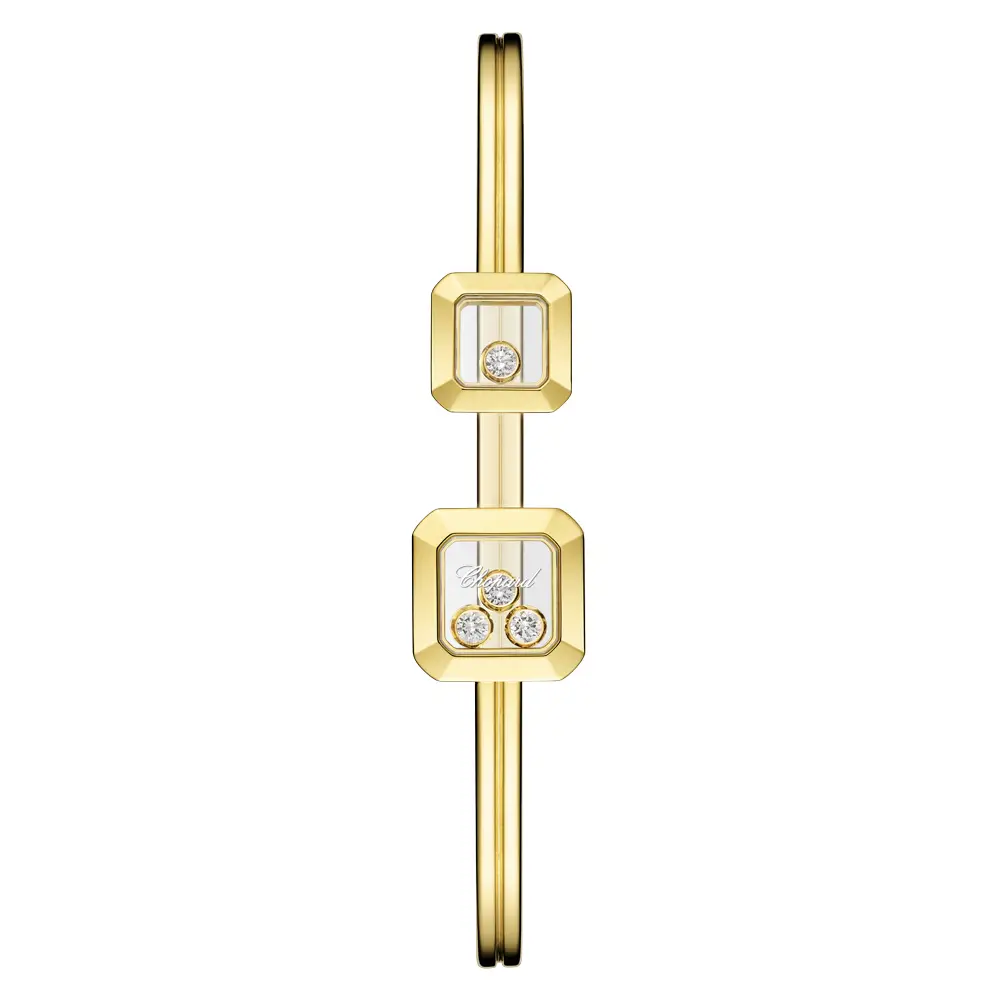 Chopard Happy Diamonds Icons Bangle 85A114-0002 — это легендарное воплощение радости, движения и женственности. Браслет выполнен из 18-каратного жёлтого золота этичного происхождения, излучающего мягкое и тёплое сияние. В центре находятся свободно движущиеся бриллианты между двумя сапфировыми стёклами, которые «танцуют» при каждом движении руки — фирменный символ коллекции Happy Diamonds, олицетворяющий свободу и радость жизни.