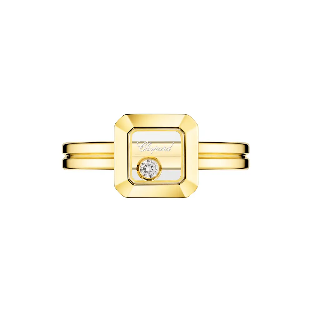 Chopard Happy Diamonds Icons 82A114‑0110 — изысканное женское кольцо из легендарной коллекции Happy Diamonds, символизирующей игривость, свободу и радость жизни. Модель выполнена из золота 18 кт жёлтого цвета и украшена свободно движущимся бриллиантом весом 0,05 ct, помещённым между двумя сапфировыми стёклами. Такой уникальный дизайн позволяет камню «танцевать» и красиво играть на свету.