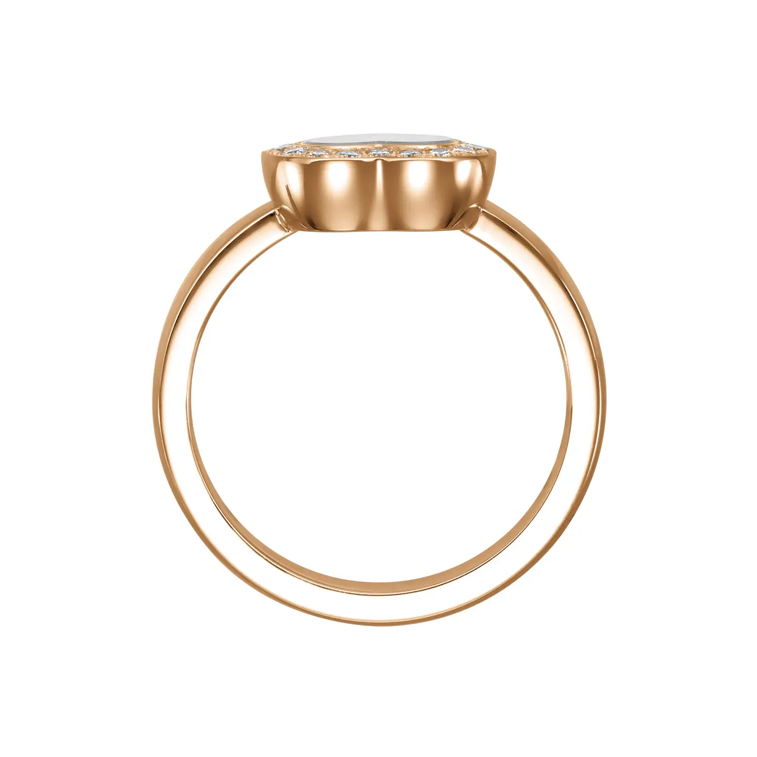 Тёплый оттенок розового золота и сияние бриллиантов создают гармонию изысканности и очарования. Идеальный выбор для женщин, ценящих утончённый, вечный стиль, сочетающий роскошь и женственность.