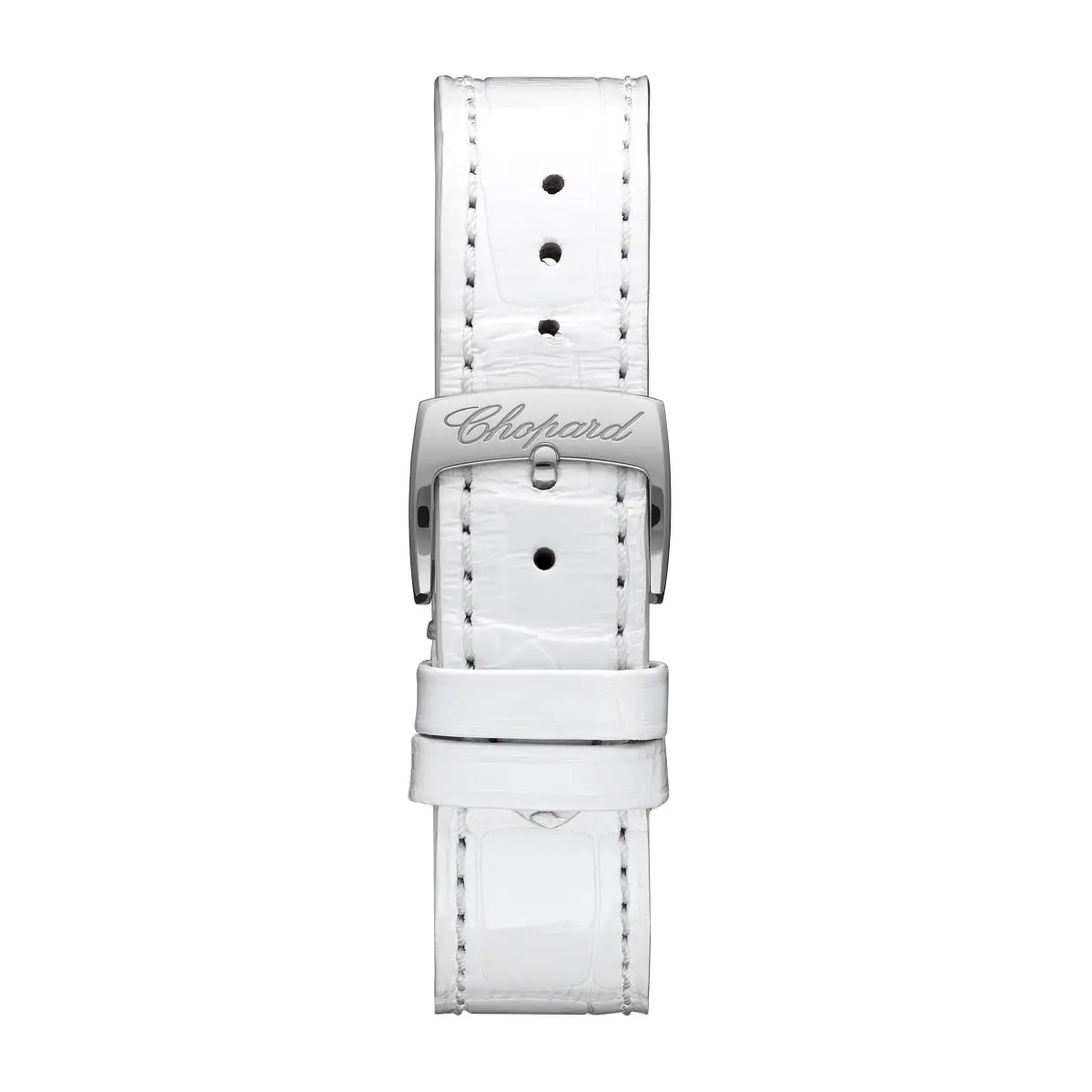 Белый ремешок из кожи аллигатора подчёркивает чистоту дизайна и красиво контрастирует с тёплым тоном золота. Классическая пряжка обеспечивает надежное и элегантное крепление.
