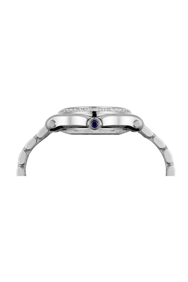 Серебристый циферблат с подвижными бриллиантами создаёт визуальную игру света и движения, добавляя образу игривую элегантность. Окно даты аккуратно расположено между 4 и 5 часами. Сапфировое стекло надёжно защищает циферблат от царапин.