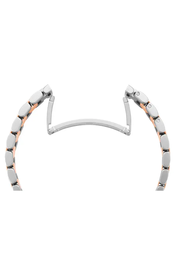 Браслет из стали и розового золота с раскладывающейся застёжкой дарит комфорт и уверенность.