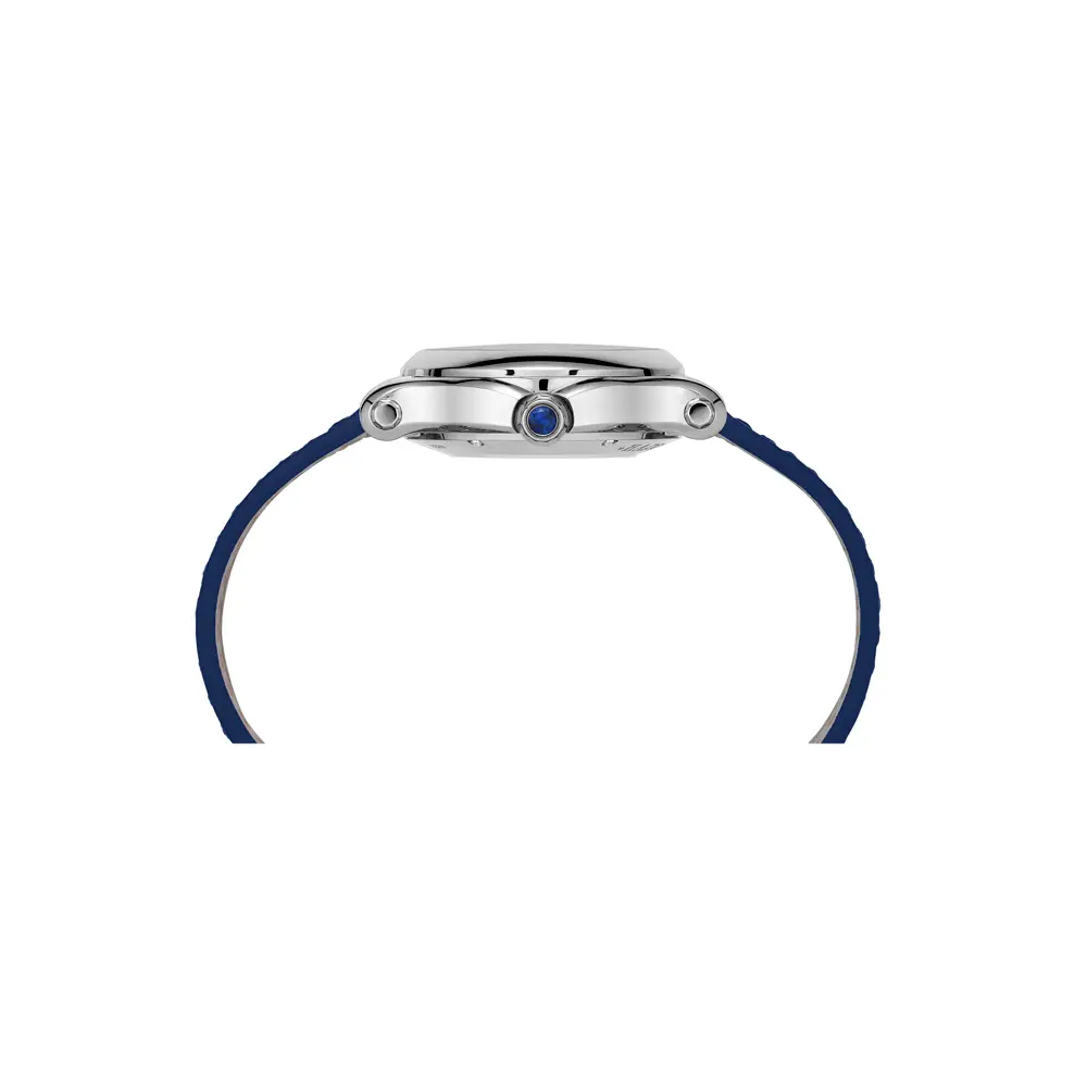 Круглый корпус 36 мм из нержавеющей стали сочетается с выразительным синим циферблатом и ремешком из кожи в том же оттенке. Окно даты элегантно встроено, а сапфировое стекло защищает поверхность от царапин.