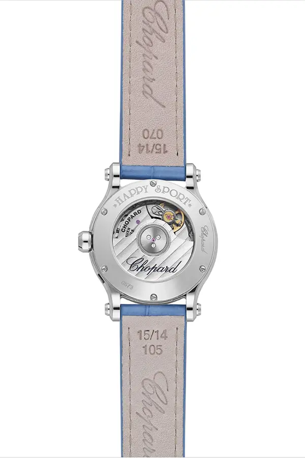 Внутри расположен швейцарский механический автоматический калибр, гарантирующий точность и долгий срок службы – отражение традиций высокого часового мастерства Chopard.