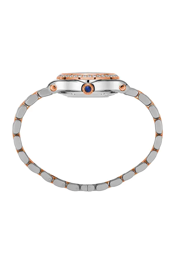Круглый корпус диаметром 30 мм защищён сапфировым стеклом, под которым сверкает перламутровый циферблат, играющий светом при каждом движении. Двухцветный браслет из стали и розового золота с раскладывающейся застёжкой обеспечивает комфорт и надёжность, превращая часы в настоящее украшение.
