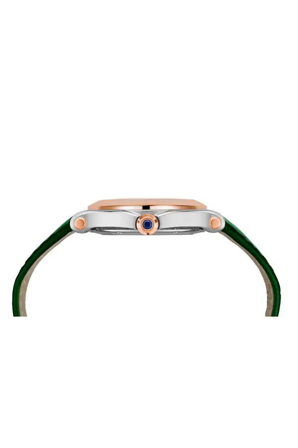 Зелёный ремешок из кожи аллигатора с классической пряжкой обеспечивает комфорт и элегантный акцент на запястье.