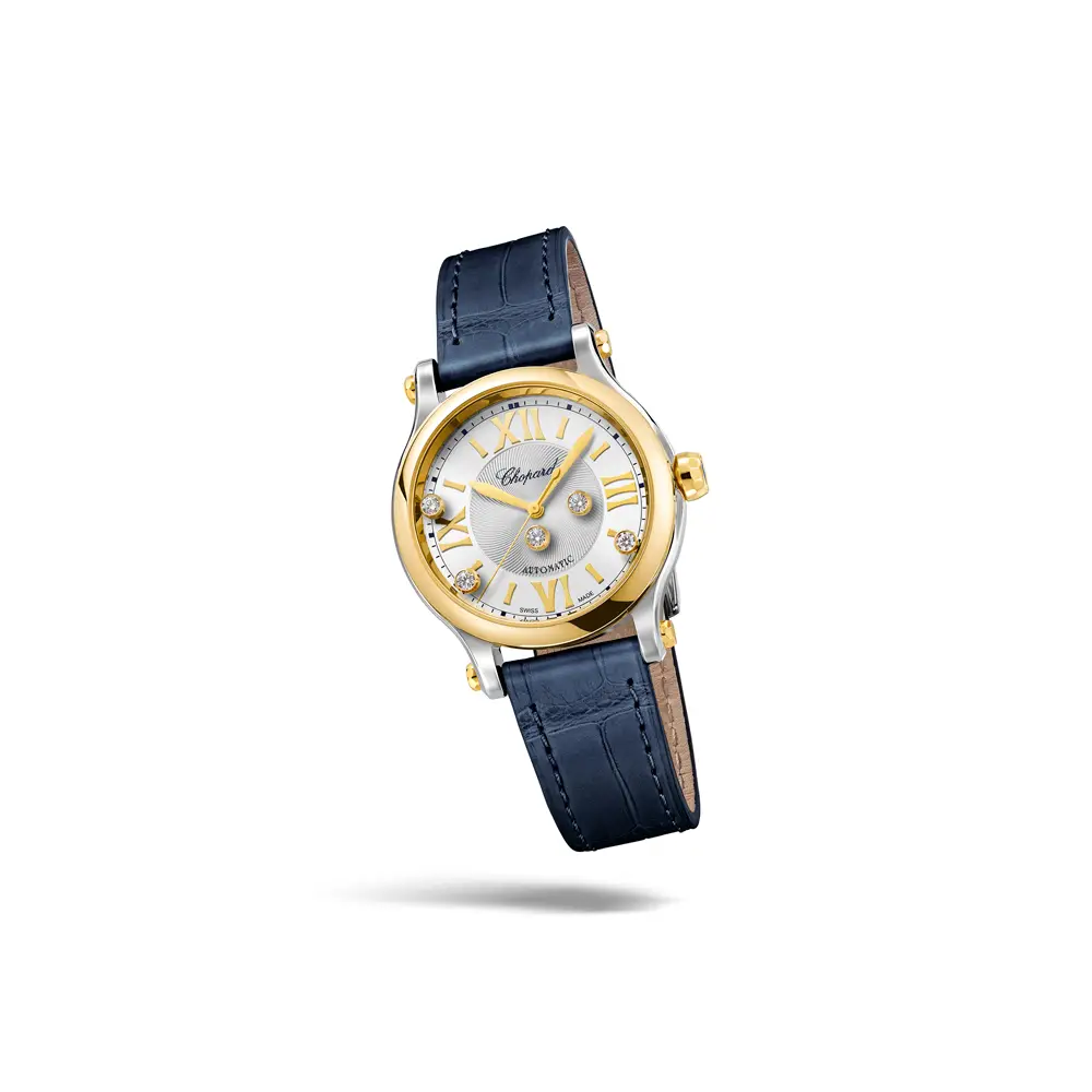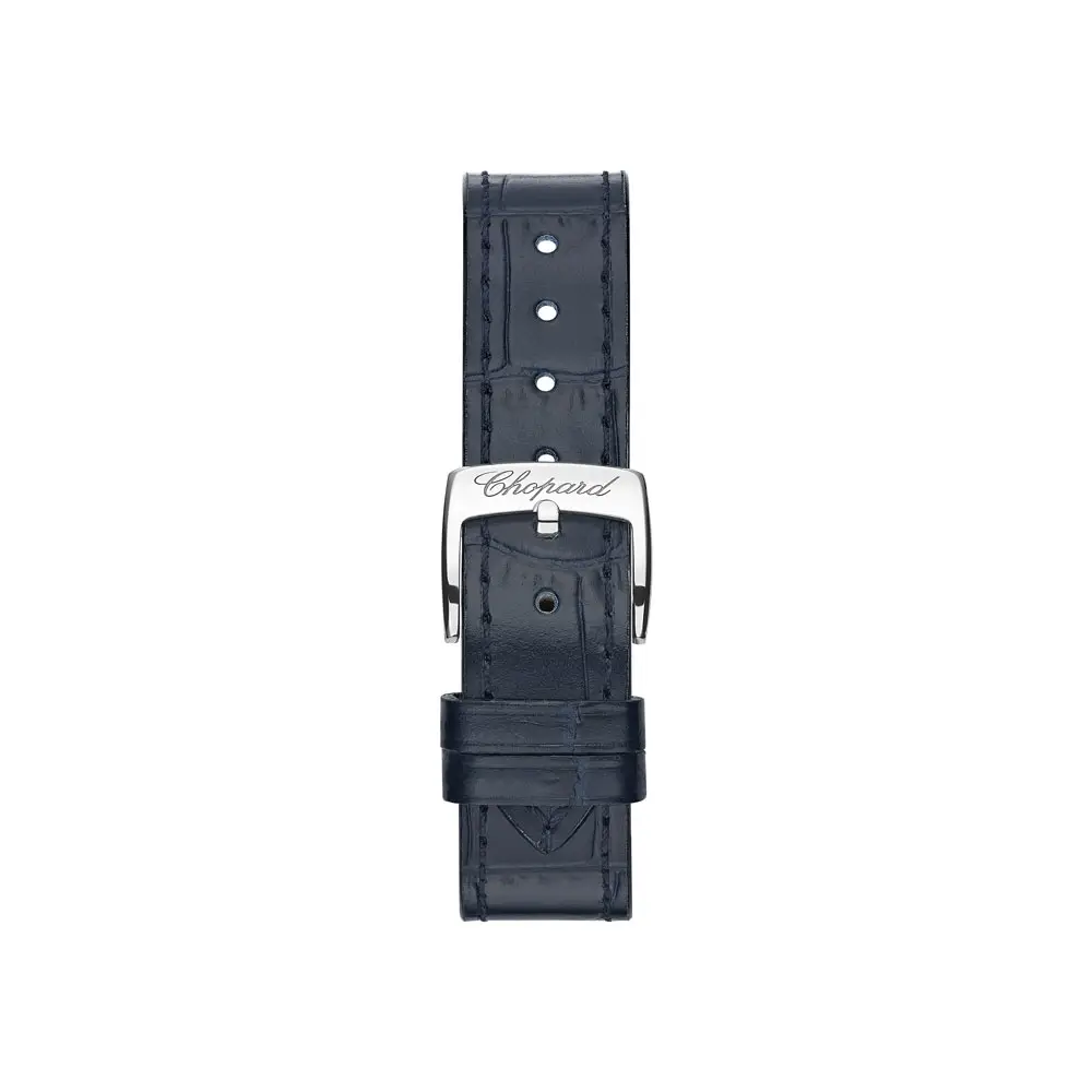 Внутри часов находится автоматический механизм Chopard 09.01-C с запасом хода около 42 часов. Модель дополнена синим ремешком из кожи аллигатора и обладает водонепроницаемостью до 30 метров. Эта 33-миллиметровая версия культовой коллекции Happy Sport - идеальный выбор для женщин, ищущих сочетание утонченности, точности и уникального выражения.