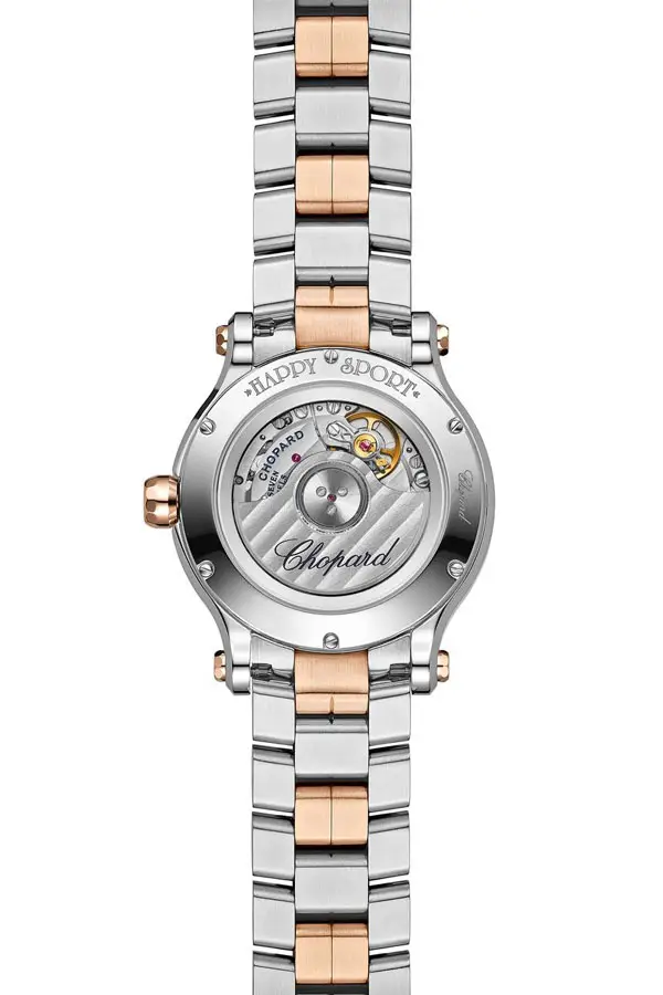 Chopard Happy Sport 278608-6002 — воплощение элегантности и изящного сочетания нержавеющей стали с 18-каратным розовым золотом. Круглый корпус 33 мм подчеркивает женственность и стиль.