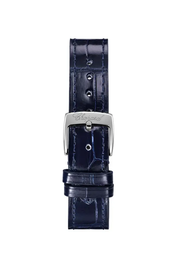 Внутри установлен автоматический механизм Chopard 09.01-C с запасом хода 42 часа и частотой 25 200 колебаний в час (3 Гц). Механизм с 27 камнями обеспечивает плавный и точный ход. Синий ремешок из кожи аллигатора добавляет контраста и утончённости, а водонепроницаемость до 30 метров делает часы практичными в повседневной носке. Chopard Happy Sport 278608-6003 — это символ современной женственности, где техника, роскошь и изящество соединяются в идеальной гармонии.