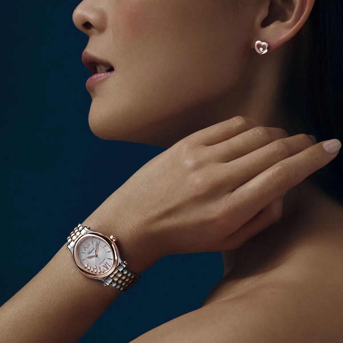 Внутри работает швейцарский механический автоматический механизм, гарантирующий точность и плавную работу — истинное проявление часового мастерства Chopard.