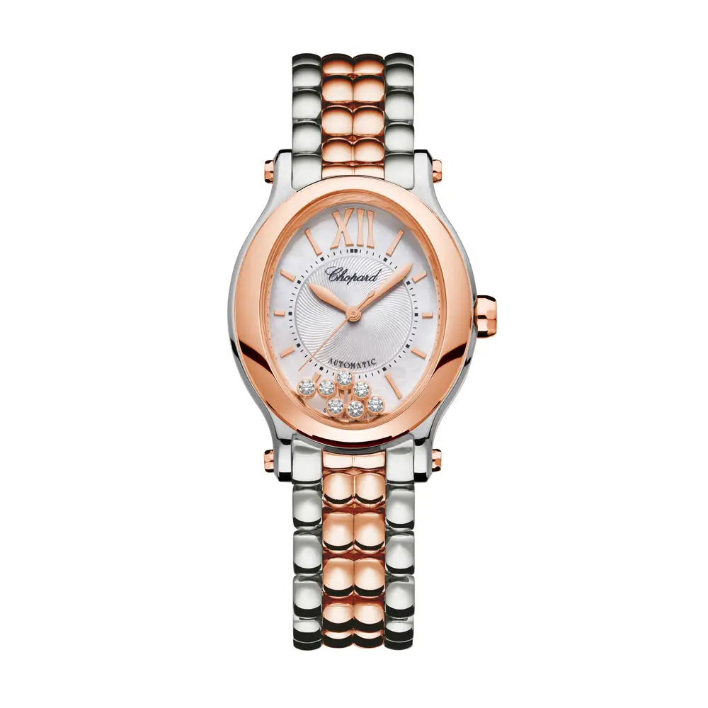 Chopard Happy Sport Oval 278602-6002 — воплощение женственности, современной элегантности и культового дизайна, прославившего коллекцию Happy Sport во всём мире. Эта исключительная модель покоряет своим овальным корпусом и изысканным сочетанием драгоценных материалов и радостных деталей в виде свободно движущихся бриллиантов.